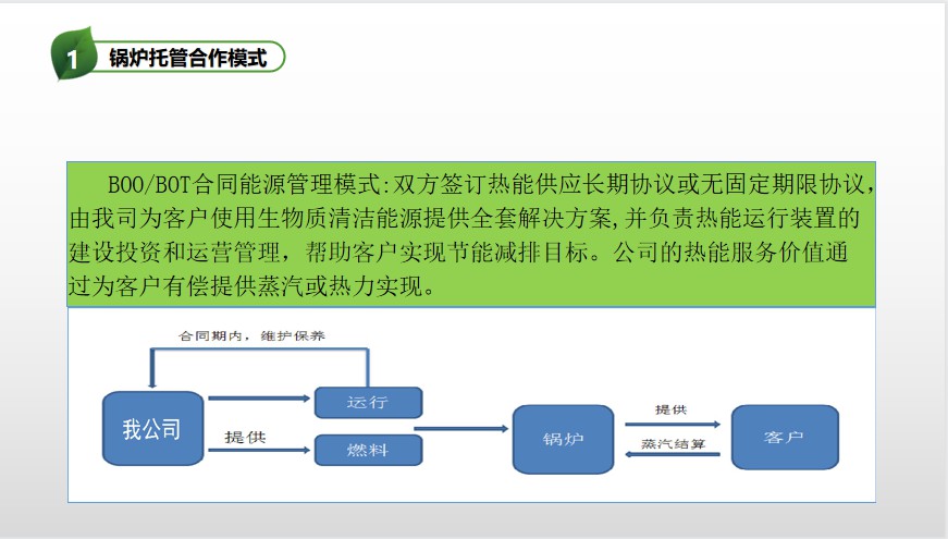樂(lè)山勇騰生物能源有限公司,位于四川省樂(lè)山市五通橋區(qū)石麟鎮(zhèn)麒麟街463號(hào)。是一家集生物質(zhì)能源技術(shù)研發(fā)、技術(shù)推廣、產(chǎn)品制造、銷售為一體的企業(yè),專業(yè)從事生物質(zhì)能源項(xiàng)目投資,設(shè)備生產(chǎn),安裝運(yùn)營(yíng),燃料供應(yīng),能源托管的綜合性服務(wù)企業(yè)。公司依托強(qiáng)大的研發(fā)和技術(shù)實(shí)力,在實(shí)踐中逐步形成了富有競(jìng)爭(zhēng)力的“3+1”業(yè)務(wù)運(yùn)營(yíng)模式(燃料生產(chǎn)與銷售、鍋爐承包托管業(yè)務(wù)、設(shè)備節(jié)能改造+供熱項(xiàng)目投資運(yùn)營(yíng)),年銷售額達(dá)數(shù)千萬(wàn)元。